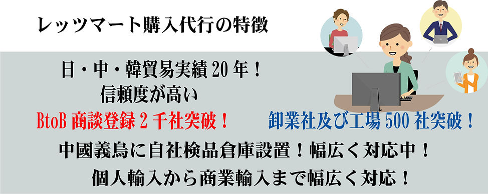 レッツマートは、国内事業者の購買力向上を目指し、海外工場や卸売業者から最低価格の単価で商品を提供しております。また、検品や手数料を通じて透明性のある競争力を発揮しております。全ての海外取引商品に対して完全な満足を提供することはできませんが、商品の相談やOEMの相談、海外市場調査など、様々なサービスを無料で提供しておりますので、お問い合わせいただければ幸いです。